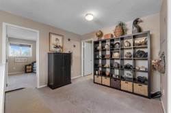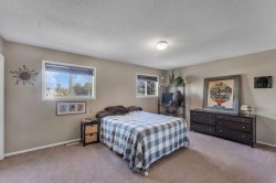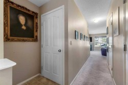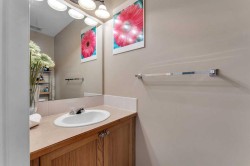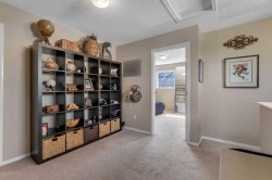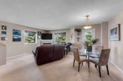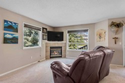 This is a heck of an opportunity to own an end unit townhome with a GARAGE backing onto greenspace. Situated in the Canals, this well run complex is quiet and peaceful. With quick access to walking paths along the Canals, you'll love the serenity of this location. Driving up, you'll appreciate the privacy of the location, and the proximity of visitor parking for guests. Inside, the open concept plan creates a comfortable atmosphere. Large windows along the back usher in natural light and a corner gas fireplace adds a cozy element. A two piece bath and convenient access to the single attached garage can be found on this level. Upstairs, you'll discover two huge primary bedrooms separated by a flex space and a 4 piece bath. The basement is partially developed with an open rec space. There is also storage and laundry. The back deck is a lovely shaded space to enjoy pretty views and birdsong. This is a pet friendly complex with up to two dogs/two cats allowed with board approval. An additional stall can be rented for $75 through the management company.