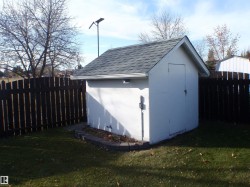 LOCATION LOCATION! Good 1148 sq.ft. SIX bedroom bungalow backing onto Cecile Martin PARK in Barr Manor (near Keir Care Centre & Schools). Hangout in your awesome yard with fire pit, concrete patio, 8x8 shed with u/g power, and 10x10 gazebo with fantastic Arctic Spa hot tub. Slip out the back gate and you're in the park, complete with playground, frisbee golf, walking path & more!. Upgrades include hot water on demand, shingles (2021), vinyl plank in living room, fridge (2023), fence on south side (2021), some light fixtures, as well as paint inside and out (2021). Basement has 3 bedrooms (one has a walk-in closet), rumpus room, 3-pc bathroom with huge shower and laundry room with storage under stairs. The oversized 1-car attached insulated garage had the overhead door replaced in 2021. If you don't want neighbors to the back or the front, then this could be what you're looking for.