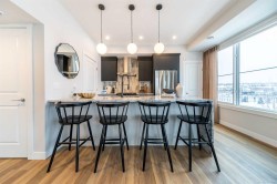 CURRENT PROMOTION: Choose 2 OF 3 (your choice): (1) FREE A/C, (2) FREE condo fees for 2 years, or (3) $5,000 towards window coverings! Welcome to Meridian townhomes in Livingston - Brookfield Residential's newest townhome development. The Brubeck model offers 2 bedrooms, 2.5 bathrooms and nearly 1,000 square feet of living space over two levels + a single attached garage. This beautiful new home has been tastefully designed and includes an open concept main living area with a wall of windows that allow natural light to pour through the main living area all day long. The kitchen is complete with a chimney hood fan, built-in microwave and suite of stainless steel appliances. The kitchen has a large quartz peninsula providing additional seating space and it overlooks the main living/dining area - making this the perfect space for entertaining! The main level is complete with a 2pc bathroom. The upper level features dual primary bedrooms, each complete with their own private ensuites and walk-in closets. Laundry is conveniently located on the second level, providing added convenience for everyday living. The private single attached garage is the perfect space to keep your vehicle and valuables safe all year long with additional storage space as well. Additional upgrades include LVP flooring on the entry level for a clean and seamless look, cabinet crown moulding, BBQ gas line, pendant island lighting and more. This brand new home comes with full builder warranty as well as Alberta New Home Warranty - allowing you to purchase with peace of mind. Perfect for those looking for their first home, investors or those looking to downsize with maintenance-free living, this brand new townhomes is nearly move-in ready in the new community of Livingston. **Please note: The property is under construction and the photos provided are of a previous home, finishes may vary.