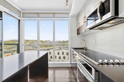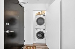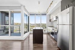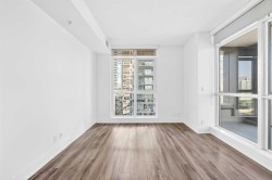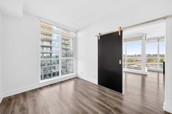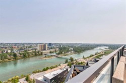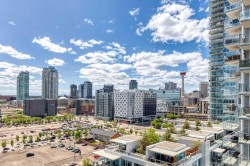 Don't miss this modern corner apartment with beautiful Bow River views in Downtown East Village!This 706 sq.ft. corner unit features 2 bedrooms, 2 bathrooms, 9’ high ceilings, and an open-concept layout throughout the Living Room and Kitchen. Floor-to-ceiling windows flood the space with natural light, while the Living Room opens to a balcony with unobstructed Bow River and city views. From both the Living Room and Master Bedroom, you can also enjoy views of the Calgary Tower.The Kitchen features ample cabinets, a center island with Quartz countertops, and an eating area, perfect for everyday living or entertaining. The Master Bedroom includes two closets and a 3-piece Ensuite with Quartz countertops and a standing shower, while the second Bedroom has a closet and scenic views of the Bow River and bridge. A 4-piece Bath and in-suite Laundry complete the home.This unit also comes with a titled underground parking stall. Building amenities include a Rooftop Sky Lounge with full kitchen, meeting/game room, Creative Room, pool room, Wi-Fi Cafe, Yoga Studio, Residents Gym, and Guest Suite. Steps from SuperStore, Studio Bell, Riverwalk Path, trendy eateries, boutique shops, Saddledome, Downtown Library, and C-Train, this apartment combines city living with scenic beauty.Bright, modern, and move-in ready—this Bow River-view home is a must-see!