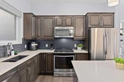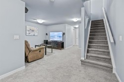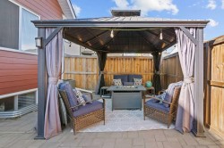 One of the LOWEST PRICED homes in Mahogany! This 3-bedroom, 2.5-bathroom bungalow is brimming with upgrades, including AC, a HUMIDIFIER, SMART THERMOSTAT, WATER SOFTENER and NEW CARPETS. Step inside to discover a bright, open-concept main floor with soaring ceilings and LARGE WINDOWS that fill the home with natural light. The gourmet kitchen is a chef’s delight, complete with sleek QUARTZ countertops, a GAS STOVE, premium STAINLESS-STEEL APPLIANCES, a stylish tile backsplash, and a central island—perfect for entertaining or casual meals. A spacious pantry adds practical STORAGE to this elegant space. The main floor also features an inviting living room and dedicated dining area, along with a private primary suite boasting large closets and a luxurious 4-piece ensuite with dual sinks and a glass-enclosed shower. A convenient MAIN- FLOOR LAUNDRY room, 2-piece powder room, and LUXURY VINYL PLANK FLOORING complete the level.Downstairs, the FULLY FINISHED basement offers versatility with a rec room WIRED FOR SPEAKERS, TWO BEDROOMS—each with WALK IN CLOSETS, and a modern 4-piece bathroom. Enjoy faster connections with upgraded CAT 6 ETHERNET WIRING. Whether you're hosting guests, working from home, or creating space for teens or hobbies, this level delivers. Step outside to enjoy LOW – MAINTENANCE LANDSCAPING with garden beds and relax or entertain in the private backyard oasis—complete with a BBQ GAS LINE, spacious patio, and covered GAZEBO with curtains. The FULLY FENCED backyard also includes a gravel PARKING PAD with ample room to comfortably park a vehicle in front of the large storage shed—a rare combination that highlights the generous lot size and smart layout. This home has been FREHLY PAINTED and PROFESSIONALLY CLEANED, and sure to impress! Mahogany offers residents exclusive access to two private beaches, a four-season Beach Club, and year-round activities—from summer swimming and paddleboarding to winter skating and ice fishing. Scenic pathways wind through wetlands, parks, and playgrounds, perfect for walking, jogging, or biking. At its core, the Urban Village features shops, restaurants, cafés, fitness studios, and essential services, while top-rated schools and quick access to major roadways make Mahogany ideal for families and commuters alike. Don’t miss your chance to own in this fantastic lake community!