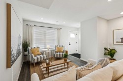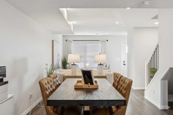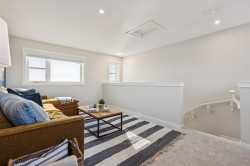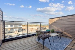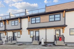 Welcome to this stylish two-storey townhome with a rooftop patio in Calgary’s sought-after lake community. The open-concept main floor seamlessly connects the kitchen, dining, and living areas. The modern kitchen features upgraded stainless steel appliances, an island with quartz countertops, and ample storage. Upstairs, enjoy two spacious bedrooms, each with its own ensuite and generous closet space, plus upper-floor laundry. The master bedroom includes an upgraded walk-in shower, and additional premium back splash and finishes enhance the home’s modern appeal.This ZEN home is built for efficiency and comfort, with 40% more insulation than code, triple-pane windows, and airtight construction. Energy-efficient features include a high-efficiency heat pump with dual fuel gas and 19 solar panels. The home also offers a fully developed third level and a private rooftop patio, perfect for entertaining or relaxing outdoors.