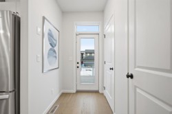 Welcome to this immaculate showhome in the highly desirable Wolf Willow community! This pristine 3-bedroom, 2.5-bathroom home has never been lived in and comes fully furnished with designer show home furniture, curated art pieces, and elegant window coverings all included. Boasting over $45,000 in builder upgrades with tasteful, high-end finishes throughout, this home features air conditioning for year-round comfort, professionally landscaped yard with mature plantings, and a beautiful deck perfect for entertaining. Every room showcases thoughtfully designed accent walls adding character and style, while a convenient office desk nook on the second-floor hallway maximizes every inch of space. Ideally situated steps away from the dog park, this home is perfect for pet owners and families alike. Wolf Willow has long been cherished for its natural beauty, diverse fish and wildlife, and abundant recreational opportunities. With its contemporary design, numerous amenities, and strong connection to the river, Wolf Willow brings the lifestyle and beauty of the Bow River Valley right to your doorstep. This is a rare opportunity to own a designer showhome with everything included - simply move in and start living the Wolf Willow lifestyle!