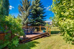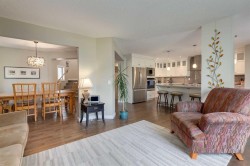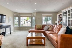 Tucked away in a quiet cul-de-sac and backing directly on to a lush green space, this home is the true epitome of family living. The low-maintenance backyard flows effortlessly into the park beyond - simply open the gate and your world expands into endless space for children to play, pets to roam, and neighbours to gather. Inside, the home radiates warmth and comfort with an open-concept design and updated birch hardwood floors throughout the main level. The inviting living room centres around a cozy fireplace, while the beautifully renovated gourmet kitchen strikes the perfect balance of timeless elegance and function. Granite countertops, custom ceiling-height cabinetry, stainless steel appliances (including a gas range), and a generous island with breakfast bar make it a natural hub for everything from Saturday morning pancakes to evening glasses of wine. The adjoining dining area is perfectly placed for family dinners and holiday celebrations, creating a seamless flow for everyday living and special occasions alike. Just off the garage, a well-designed mudroom with main floor laundry keeps busy family life organized with ease. Upstairs, a spacious bonus room invites game nights, movie marathons, or quiet afternoons with a book. The primary suite feels like a private retreat with its walk-in custom California Closet and a spa-inspired ensuite featuring a freestanding soaker tub and glass-enclosed shower. Two additional bedrooms share an updated full bathroom, completing this family-friendly level. The fully finished lower level adds even more versatility, with a cozy family room, guest bedroom, and flex space ideal for a home gym or office. Practical updates include two new hot water tanks (2025), recently serviced furnace and A/C (2025), new garage door, new LG refrigerator & well maintained roof. Outdoors, summer evenings come alive on the rebuilt deck, kids ride bikes and play street hockey in the cul-de-sac, and family walks wind through nearby pathways and parks. With Griffith Woods School (K–9), Ernest Manning High, Rundle College, Ambrose University, Westside Rec Centre, Aspen Landing, West Hills Towne Centre, Stoney Trail and the C-Train all nearby, every convenience is close at hand. This is more than a house - it’s a warm and welcoming family home, designed for everyday moments and lasting memories.
