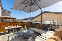 Welcome to this beautifully designed home in the family-friendly community of Copperfield—a neighbourhood known for its parks, greenspaces, and established schools. Inside, you’ll find a modern open-concept floorplan with stylish finishes throughout. The front living room features a cozy fireplace, while the back kitchen offers a large eat-up island, granite countertops, ample cabinetry, and a spacious pantry—perfect for both everyday living and entertaining. Stay cool in the warmer months as this home also features central air conditioningUpstairs, there are three generous bedrooms, including a primary suite with a large walk-in closet and a 4-piece ensuite. Also, upper floor laundry for your convenience.This property also features a rare oversized, insulated, and heated garage, complete with 240V power—perfect for heavy tools, a workshop, or future EV charging. It even includes a second front-facing garage door, making it easy to open up for convenience or for hosting unforgettable gatherings.Enjoy the sunny backyard with its large composite deck and poured concrete patio—perfect for gatherings. This home perfectly blends comfort, functionality, and style—a true gem in one of Calgary’s most beloved communities.