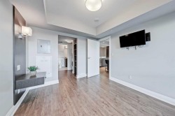 *VISIT MULTIMEDIA LINK FOR FULL DETAILS, INCLUDING IMMERSIVE 3D TOUR & FLOORPLANS!* This bright NORTH-facing 1-bed + den unit with stunning PANORAMIC RIVER VIEWS from the 24th floor in the upscale Vogue building is a must-see! There are only 4 upgraded floors in the Vogue building, which were specially customized for Bedouin Suites, and this is one of them! EXCLUSIVE BEDOUIN FEATURES include upgraded hallways and common areas, as well as INCREDIBLE UNIT UPGRADES like custom kitchen islands with bar seating, upgraded appliances & lighting including dimmers throughout, custom bedroom panelling including built-in side tables with convenience plugs, upgraded bathrooms with tile wainscoting and glass shower doors, built-in walnut entertainment units, a Smart Sensor energy management system for the eco-minded buyer and MORE! This customized ‘VARSITY’ floorplan also had a kitchen wall removed for improved flow and natural light, and WOW, does it look good! This condo presents modern living at its finest, including an open-concept layout filled with natural light through ample floor-to-ceiling windows, complemented by luxury vinyl plank flooring adorning the main living spaces. The modern kitchen boasts wood-grain cabinets with modern hardware and under-cabinet lighting, a specially designed central island with quartz counters, a tile backsplash, a dual-basin undermount sink, and upgraded stainless steel appliances, including a chimney-style hood fan. The open main living area features a built-in walnut entertainment unit with a wall-mount TV included and access to a large balcony with a gas line for a BBQ and panoramic views of the Bow River. The bedroom features custom wall panelling with built-in side tables, wall sconce lighting and a convenient receptacle with a USB port, plus an included wall-mounted TV. A large walkthrough closet with built-in organizers and a stacked laundry leads to the 4-pc bathroom complete with occupancy-sensored lights, quartz countertops, tile wainscoting, an undermount sink with modern faucet, tile backsplash, modern vanity with storage, tile floors, and a large tub/shower combo with full height tile and an upgraded glass door. Additionally, a sizable den makes the perfect home office or flexible space. VOGUE is a high-end building with a ton of amenities, including UNDERGROUND HEATED PARKING, central A/C, an elegant formal lobby, full-time concierge, gym, billiards, a large party room with a kitchen, a yoga studio, a Sky Lounge on the 36th floor, and multiple rooftop terraces. Surrounded by parks, transit, the LRT, shopping & more, & within walking distance to the downtown core & all Kensington shops & services – this location offers the best urban lifestyle in the Downtown Commercial Core.