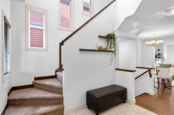 *OPEN HOUSE SATURDAY JANUARY 10TH AT 2:00PM - 4:00PM* Welcome to 263 Evanston Way NW, ideally located across from a school and green space in one of Evanston’s most family-friendly pockets. This well-maintained home offers over 2,200 sq ft of developed living space across three finished levels, with thoughtful upgrades throughout. The covered front porch leads into a bright foyer, with a private front OFFICE ideal for working from home. Main-floor laundry and a convenient powder room add everyday functionality. The open-concept main living area features a recently updated kitchen with QUARTZ countertops, two-toned cabinetry (white uppers with blue lowers and island), STAINLESS STEEL APPLIANCES, and a generous pantry. The kitchen flows seamlessly into the dining area and rear living room, anchored by a GAS FIREPLACE and large windows overlooking the beautifully landscaped backyard. Outside, enjoy a two-tiered deck with pergola, perfect for entertaining or relaxing, plus the added benefit of a heated detached garage for year-round use. Upstairs, the spacious primary bedroom includes a walk-in closet and a well-appointed ensuite with soaker tub and separate shower. Two additional bedrooms with newer triple-pane windows, a full bathroom, and an open-to-below landing complete the upper level. The FULLY DEVELOPED BASEMENT offers a large rec room with WET BAR, a fourth bedroom, and a full bathroom - ideal for guests, teens, or extended family. This level also includes an organized utility space, ample storage, and a BRAND NEW HOT WATER TANK. Recent updates include new siding, new roof shingles, updated kitchen finishes, and CENTRAL AIR CONDITIONING, offering move-in-ready peace of mind. Located in the heart of Evanston, this home provides easy access to schools, parks, pathways, shopping, and major commuter routes. A well-rounded property offering plenty of space, functionality, and a strong community setting. Book your private showing today!