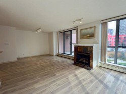 Welcome to Axxis in Downtown West End, a highly desirable concrete high-rise in downtown Calgary. This bright and spacious 2-bedroom, 2-bathroom apartment offers the perfect combination of urban convenience and modern comfort. Located on the 4th floor, this unit features an open-concept layout with large windows that fill the space with natural light. The functional kitchen is complete with quality cabinetry, plenty of counter space, and a kitchen island that opens to the dining and living areas—ideal for entertaining. The primary bedroom boasts a private 4-piece ensuite, while the second bedroom is well-sized and perfect for guests, a home office, or roommates. An additional full bathroom adds convenience. Enjoy the outdoors from your private balcony, perfect for morning coffee or evening relaxation. This well-managed building also offers underground parking, in-suite laundry, and ample storage. Situated just steps away from the Bow River pathways, C-Train station, shopping, dining, and entertainment, this location is ideal for professionals, students, or investors looking for a great opportunity in Calgary’s vibrant core. Don’t miss your chance to own this fantastic downtown home—book your showing today!