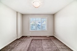 **AMAZING OPPORTUNITY** Welcome to Cedarglen’s Elements at Nolan Hill! This bright and spacious 3 level townhouse offering close to 1,700 sq ft of stylish living space with 3 bedrooms and 2.5 bathrooms—perfect for families, professionals, or anyone looking for low-maintenance living in a vibrant community. The entry level welcomes you with a versatile flex room ideal for a home office, gym, hobby space, or guest room, along with convenient access to the oversized double garage—perfect for vehicles, gear, and extra storage. Upstairs, you'll find a beautifully open-concept main floor featuring a modern kitchen complete with stainless steel appliances, quartz countertops, subway tile backsplash, and a large island that's perfect for entertaining. The spacious dining and living areas flow seamlessly onto a private deck equipped with a BBQ gas line—ideal for summer evenings. The top floor features a generously sized primary bedroom with a walk-in closet and 4-pc ensuite feat. double sinks and a large glass shower. Two additional bedrooms, a full bath, and a convenient upper-floor laundry area with Whirlpool washer and dryer round out the level. This well-managed complex showcases a stylish Hardie Board and stone exterior, and your condo fees include lawn care and snow removal. Enjoy the beautifully landscaped green spaces, visitor parking, and walkable access to local shops, parks in this welcoming neighbourhood. Don’t miss your chance to call this exceptional unit home.