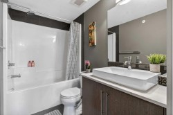 Some homes simply resonate the moment you step inside. This thoughtfully curated 2 – bedroom, 2–bathroom top–floor unit in Skyview Ranch blends style and substance effortlessly, with every room crafted for comfort, natural light, and connection. Morning sunshine streams through the patio doors, bathing the open-concept living area in a gentle glow. From the living room, sliding glass doors usher you onto a generous balcony overlooking the mountains, where you can savor outdoor meals all summer long. The spacious kitchen, framed with full-height cabinetry and refined finishes, feels both grounded and welcoming, including quartz countertops, stainless steel appliances, in-suite laundry, cork flooring, and carpet. A modern light fixture anchors the dining area, perfectly centering your dining table. A built-in desk area is nestled between the dining and living rooms, offering a convenient place for remote work or school assignments. Both bedrooms are ample and finished with luxurious carpeting. The primary bedroom boasts a walk-through closet that opens into a private 4-piece ensuite with a tub/shower combo. The second large bedroom on the far side of the unit is served by an adjacent 4-piece bath. The in-suite laundry is a welcome convenience and provides sufficient storage. This condo also includes the convenience of a titled underground parking stall, along with an additional storage locker located in front of the stall, perfect for seasonal items. As a resident of Skyview Ranch, you’ll enjoy an unbeatable lifestyle with access to schools, shopping, restaurants, parks, and excellent transportation routes, making commuting easy. With quick access to Stoney Trail, Deerfoot Trail, CrossIron Mills, Amazon shipping depot, and The Airport. You’ll be well-connected to go anywhere you want to explore. Schedule your showing today!