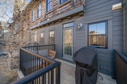 Welcome to The Enclave, a tucked-away gem in the prestigious community of Aspen Woods. Backing onto a peaceful west-facing green space, this townhome offers privacy, tranquility, and a touch of nature right out your back door. Inside, you’ll find 1,334 sq. ft. of bright, open living space filled with natural light. The main floor showcases beautiful hardwood floors, an open concept design, and a stylish kitchen complete with quartz countertops, stainless steel appliances, and a gas range. Step out onto the deck with a gas hookup, perfect for summer barbecues. Central A/C ensures year-round comfort. The popular double primary floor plan offers two spacious bedrooms, each with its own ensuite and plenty of closet space. The double tandem garage provides room for two vehicles plus extra storage, while the full driveway is a rare convenience in townhome living. This well-managed complex offers low condo fees, beautifully landscaped grounds, a quiet pond, and scenic walking paths where you can enjoy abundant birdlife and wildlife — a true nature retreat in the city. Families will appreciate the proximity to top-rated public and private schools, including Webber Academy, Rundle College, and Calgary Academy, along with excellent local options. Just down the road, Aspen Landing provides a vibrant mix of boutique shops, restaurants, coffee spots, grocery stores, and all the everyday conveniences, with the C-Train keeping downtown only minutes away. Meticulously maintained, this home offers unmatched pride of ownership — book your private viewing today and see the difference.