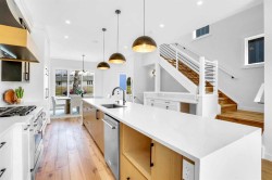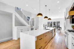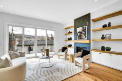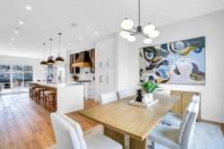 This BRAND NEW, MOVE-IN READY infill in MONTGOMERY checks all the boxes for stylish, functional inner-city living—with the added bonus of a fully private 1-BED WALKOUT SUITE (approved with permits and subject to final inspection). Whether you're looking for extra income, space for guests, or a little more flexibility in your day-to-day, this one delivers. Step inside to a bright, welcoming foyer with a full coat closet—simple, clean, and easy to come home to. At the front of the home, the dining area offers space for a full-size table and flows naturally into the heart of the home: the kitchen. The kitchen brings a timeless feel with classic SHAKER-STYLE CABINETS, a custom-built hood fan with oak accents, glass display shelves with LED lighting, and a quartz-topped island with waterfall edges. You’ll also find an upgraded KITCHENAID APPLIANCE PACKAGE, including a gas range with pot filler and a large KitchenAid French door fridge. There’s also a convenient coffee or beverage station, complete with room for a beverage fridge. The living room is warm and elevated, featuring an INSET GAS FIREPLACE with full-height tile surround and built-in display shelving with closed cabinetry for extra storage. Natural light pours in through large rear sliders, leading out to the sunny SOUTHWEST-facing back deck with privacy screens already installed. Off the rear entry, the mudroom includes built-in shelving, a bench, and cubbies, with access to the powder room—private, polished, and finished with a skirted quartz counter and decorative framed mirror. Upstairs, the primary suite is a calm retreat with a tray ceiling, spacious walk-in closet, and a stunning ensuite that includes a freestanding soaker tub, walk-in shower with DUAL RAIN HEADS, and double vanity. Two more bedrooms, a full bath with attractive STACKED HORIZONTAL TILE, and a laundry room with designer tile flooring complete the upper level. Downstairs, the WALKOUT SUITE (approved, subject to final inspection) is bright, smartly designed, and full of quality finishes. The living room has a BUILT-IN FLOATING MEDIA CENTRE, and the full kitchen mirrors the same modern style as upstairs, with warm oak flat panel cabinetry and quartz countertop. There’s a full bathroom, stacked laundry, and a large bedroom with walk-in closet—plus its own separate entry for total independence. Set just off Home Road, this location offers easy access to main routes like 16th Ave and Memorial Drive while keeping you steps from nature. Walk to Shouldice Park, Bowmont Park, and the Bow River Pathway system for daily runs, dog walks, or weekend bike rides. You're minutes from Montalcino Ristorante, NOtaBLE, and lots of local coffee shops, restaurants, and bars for food and coffee favoUrites. Groceries, schools, Market Mall, U of C, and Foothills Hospital are all close by, making this one of Calgary’s most livable and up-and-coming inner-city communities. Photos and Room Size are from Showsuite. Call today to view!