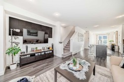 Welcome to modern comfort and convenience at 9053 46 Street NE, Calgary. Situated on a desirable corner lot in a family-friendly community, this stylish two-storey townhouse offers contemporary design, abundant natural light, and exceptional functionality—all with no condo fees. The location is unbeatable, just steps from parks, playgrounds, schools, medical and dental clinics, a pharmacy, wellness centre, barber shop, grocery stores, and restaurants. Surrounded by green spaces, this home provides an ideal setting for families and outdoor enthusiasts alike. Step inside to a bright, open-concept main floor where large windows fill the living, dining, and kitchen areas with natural light. The modern kitchen features sleek quartz countertops, ample cabinetry, and a practical layout perfect for both daily living and entertaining. A convenient mudroom and 2-piece bathroom complete the main level, enhanced by durable vinyl flooring that offers both style and easy maintenance. Upstairs, you’ll find three well-appointed bedrooms designed for comfort and privacy. The spacious primary suite includes a walk-in closet and a private 4-piece ensuite, creating a relaxing retreat. One of the additional bedrooms also features a walk-in closet, while a second 4-piece bathroom serves the remaining bedrooms. Outside, enjoy the benefits of a double detached garage providing secure parking and additional storage. The corner lot enhances curb appeal and offers extra outdoor space for gardening or play. Ideally located near parks, schools, playgrounds, and a nearby commercial complex, this home perfectly balances peaceful living with everyday convenience. Whether you’re a first-time buyer, a growing family, or an investor seeking excellent value, this property delivers modern living in one of Calgary’s rapidly developing northeast communities.