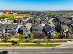 Welcome to this beautifully designed 6 bed, 4 bath family home in Evanston, thoughtfully finished from top to bottom and ideally located close to every amenity. The main floor features rich hardwood flooring and a welcoming layout with a formal dining room, elegant built-in details, and plenty of natural charm. The chef-inspired kitchen is equipped with stainless steel appliances, stone countertops, a hallway pantry, and an oversized island with an eat-up bar—perfect for everyday meals and entertaining alike. A spacious living room offers large northwest-facing windows and a cozy three-sided fireplace, while the dining area flows seamlessly onto a large deck, extending your living space outdoors. Completing the main level are a convenient laundry room and powder room. Upstairs, a bright bonus room provides additional living space alongside three bedrooms and a stylish 5-piece bath. The primary retreat is a true getaway, complete with its own spa-inspired 5-piece ensuite. The fully finished basement expands your living options with two additional bedrooms, a 3-piece bath, laminate flooring, and a well-planned kitchenette. Built-in features, a utility room, and extra storage make this level both practical and versatile. Outdoors, the northwest-facing backyard is designed for relaxation and entertaining with a large wood deck, low-maintenance gravel and stone patio, and mature trees offering shade and privacy—plus no houses behind. At the front, you’ll find a double attached garage and a generous driveway for ample parking. This home is perfectly situated within walking distance to Freshco, local shops, schools, soccer fields, green spaces, pathways, and an off-leash dog park. With quick access to Stoney Trail, 14 St NW, and Deerfoot Trail, commuting is a breeze. A rare blend of comfort, convenience, and thoughtful design—this home truly has it all.