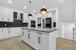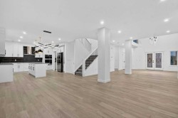 Stunning Brand-New Luxury Home in Chestermere | 5 Beds + Triple Garage | Park-Facing Corner Lot. Welcome to this spacious, beautifully crafted brand-new home located in one of Chestermere’s highly sought-after lake communities, where resort-style amenities meet everyday convenience. Set on a premium corner lot backing onto a park, this property offers exceptional space, high-end finishings, and thoughtful design throughout. Step inside to soaring open-to-above ceilings, elegant chandeliers, and a bright, airy layout that blends luxury with comfort. The main floor features a bedroom with its own private en suite, ideal for guests, extended family, or multigenerational living.Upstairs, you’ll find four generous bedrooms, including two beautiful primary suites, each with its own spa-inspired en suite, a rare and highly desirable layout perfect for large families. The heart of the home is the gorgeous chef’s kitchen, showcasing premium cabinetry, high-end finishes, and a Samsung smart refrigerator with built-in touchscreen and TV. A fully equipped spice kitchen adds even more convenience for cooking and entertaining.Additional features include: Triple-car garage, corner lot backing onto green space, high-end modern finishings throughout, open-to-above/below architectural design, abundant natural light and spacious flow. Located in a vibrant lake community, this home gives you access to Chestermere’s incredible amenities—beaches, walking paths, parks, playgrounds, community events, restaurants, schools, and shopping—all while being just minutes from the city. With an easy commute to Calgary and quick access to major routes, this is the ideal family home for those seeking luxury, space, and convenience. Move-in ready and built to impress—experience the best of Chestermere living!