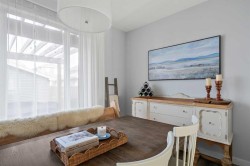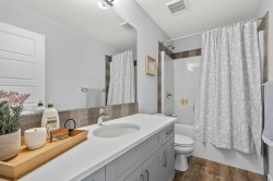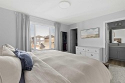 A pristine original-owner home in the heart of Chelsea, Chestermere - showcasing true pride of ownership and presenting as close to new as it gets. With nearly 1,650 sq. ft. of thoughtfully designed living space, this is the ideal family home offering 3 bedrooms, 2.5 bathrooms, a fully landscaped yard, a private double detached garage, and an undeveloped basement with rough-ins ready for your future vision. The open-concept main level is anchored by a stunning central kitchen, creating the perfect flow for both everyday living and entertaining. Finished with timeless light grey shaker cabinetry, an oversized quartz island, and a full suite of upgraded stainless-steel appliances, this kitchen is as functional as it is beautiful. A south-facing front great room is bathed in natural light through a wall of windows, while the expansive ~14' x 10' dining area at the rear comfortably accommodates any dining setup and overlooks the private backyard. A convenient powder room and large closets at both the front and back entrances complete the main level. On the upper level, the impressive ~14' x 12' primary suite easily fits a king-sized bed and additional furniture. It’s complete with a luxurious 5-piece ensuite featuring dual sinks, a soaker tub, a walk-in shower, and a generous walk-in closet with space for two. Two comfortable secondary bedrooms sit at the opposite end of the home, separated by a large main bathroom and an upper-level laundry room - an ideal layout for privacy and practicality. Outside, the property is fully landscaped, fenced, and completely move-in ready - saving you the time and cost typically associated with new construction. Enjoy multiple outdoor living spaces, including a charming full-width covered front porch to capture the south sun, and a large rear deck with gas line and pergola overlooking the private yard. The double detached garage provides secure parking and extra storage year-round - an especially appreciated benefit during the winter. Perfectly positioned within walking distance to parks, schools, and local amenities, while still only a quick drive to Calgary, this home delivers convenience, comfort, and exceptional value in the vibrant community of Chelsea in Chestermere. A truly move-in-ready home that combines thoughtful design, modern finishes, and unbeatable location - this is one you won’t want to miss.