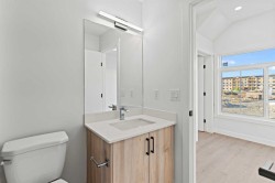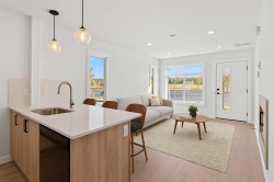 Welcome to a home where contemporary elegance meets every day comfort, coupled with an opportunity for outdoor lifestyle living. This one a kind community is your chance to have quick access to the Rocky Mountains. Stepping into the unit, you will find an open concept floorplan with 9' ceilings throughout all of the living areas, luxury wide plank flooring. Moving into the well designed kitchen, you will find quartz stone countertops with soft close drawers, upgraded stainless steel appliances, as well as an overhanging kitchen island for extra counter space. Continuing further into the unit, you will find 3 bedrooms and 2 bathrooms with contemporary plumbing fixtures, stoned tiled flooring, and quartz countertops. You will also have a titled parking stall. Sit back and relax with your sun filled waterfront views on your private deck and enjoy your evenings walking through the garden pathways and parks nearby. Being in prime location, the Greystone community will be surrounded by various large retailers including one of Canada's flagship Co-op grocery store locations - future of live, work, play in Western Canada's #1 fastest-growing region. Walking distance to Ocgrow's Greystone Place Commercial retail centre - with all of your favourite restaurants, coffee shops and amenities nearby. The Spray Lakes Sports Centre is just minutes away, pickle ball courts across the street, and the accessibility to the Rocky Mountains provides you with a great opportunity for your outdoor adventures. Don't miss out on your chance to be a part of Cochrane's fast paced growth in beautiful community of Greystone.
