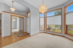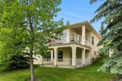Experience the ultimate in comfort, elegance, and low-maintenance living in this beautifully updated walk-out bungalow villa with over 2,300 square feet of impeccably finished space. Perfectly positioned in the prestigious community of Gleneagles, this remarkable home captures breathtaking views of the fairways and the Bow Valley below. From the moment you arrive, you'll appreciate the exceptional curb appeal, mature landscaping and the peaceful setting that defines this sought-after enclave. Step inside and be greeted by soaring 10-foot ceilings, sun drenched interiors, and bright open-concept design that seamlessly blends sophistication with warmth. Expansive windows and well-placed skylights ill the home with natural light, creating an inviting atmosphere from every angle. The rich hardwood floors, stylish finishes, and freshly repainted interior highlight the quality craftmanship throughout. The heart of the home is the gourmet kitchen - beautifully equipped with elegant cabinetry , quality stainless steel appliances, granite countertops, and spacious work area ideal for entertaining or everyday living. The adjoining dining and living areas offer the perfect settings for intimate dinners or lively gatherings, complete with panoramic views and access to the upper newly replaced Duradek - a prime spot for relaxing evenings and vivid sunsets over the valley. The luxurious primary retreat provides a serene escape, featuring a generous walk-in closet and a spa-inspired ensuite with soaker tub, separate shower, and dual sinks. The main floor also includes a versatile office or flex room that adapts easily to your lifestyle - ideal for working at home or pursuing personal projects. The walk-out lower level is equally impressive, offering an expansive open layout with large windows that flood the space with natural light. this level includes a comfortable family room with a cozy gas fireplace, a guest suite with full bathroom, and additional flex space perfect for a home gym, hobby room, or an additional bedroom. Step outside to the covered patio where you can unwind and take in the peaceful surroundings and tranquil valley views. Every detail of this home is designed for comfort and convenience. the double attached garage provides secure parking and extra storage, while the professionally maintained landscaping ensures you can enjoy a worry-free lifestyle, with its combination of location, layout and finishes, this villa perfectly balances the ease of condominium-style living with the feel of a private single-family home. Minutes from Cochrane's charming downtown, scenic pathways, natural reserves, and all amenities - and only a short drive to Calgary - this property offers the best of both worlds. whether you're seeking a lock-and-leave lifestyle or or a peaceful forever home, exceptional value, design and an unbeatable setting in one of Cochrane's most desirable communities!!!