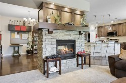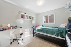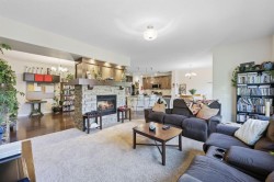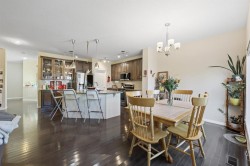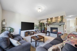 This executive two story walkout home has 3 bedrooms, laundry, and a family room on the upper level with large windows to let in lots of natural light. The main floor features an open concept layout with a kitchen hosting granite countertops, a walk though pantry a spacious living room and a formal dining room, all enhanced by a double sided gas fireplace framed in esquisite stonework. A deck adjacent to the kitchen suitable for an outdoor Catio, includes a gas BBQ hook up. The kitchen is equipped with a gas stove refrigerator featuring a water/ice dispenser with an illuminated front door, and a newly installed dishwasher. The basement contains a private illegal suite with its own laundry facilities, private entrance and privacy door from upstairs. The residence is warmed with forced air heating and cools you with AC! It also offers an attached heated double car garage with spacious back entry coat area and a significant storage room in the basement. The lower patio brings some privacy space, and a cozy sitting area Nearby walking path lead to Jumping Pound Creek, and paths to downtown.