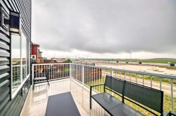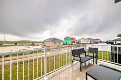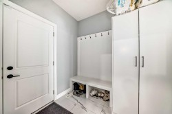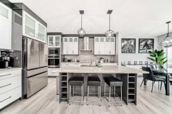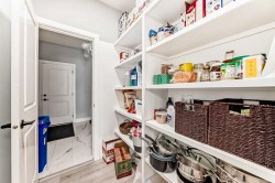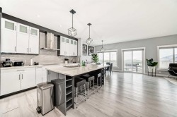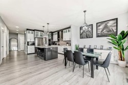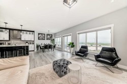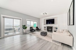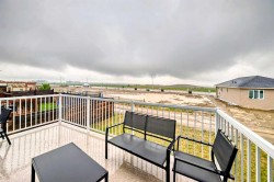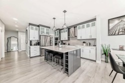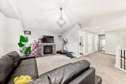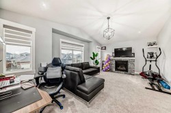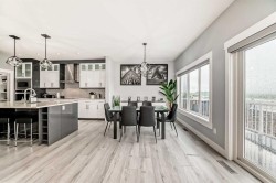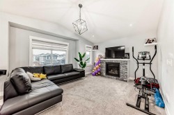 Nestled in the charming town of Crossfield, you'll find a community offering small-town tranquility with convenient city access. Families appreciate local schools like Crossfield Elementary and W.G. Murdoch, fostering a supportive environment from kindergarten through Grade 12. Crossfield's peaceful ambiance is a welcome escape, yet Calgary is just a 35-40 minute drive, making commutes manageable.Arriving at Iron Landing Way, you'll immediately sense the quiet, friendly feel of the street leading to this exceptional two-story home. Step inside the grand foyer with its soaring 20-foot ceilings, creating an immediate sense of spacious luxury. Modern comfort is enhanced by stylish zebra-style blinds; the larger foyer and patio door blinds are automated for effortless light control.The heart of this home is its expansive, open-concept main floor, filled with natural light. The gourmet kitchen is a chef's dream, featuring sleek white cabinetry with black accents, high-end stainless steel appliances, and an oversized central island perfect for gathering. A spacious walk-in pantry, with walk-through access from the garage, makes bringing in and organizing groceries incredibly easy.Seamlessly flowing from the kitchen, the bright dining area connects to the comfortable living room, where a cozy Napoleon fireplace creates a warm, inviting atmosphere. The patio door opens to a private balcony, ideal for morning coffee or unwinding with views. A stylish powder room and a dedicated main floor office add convenience and versatility.Practicality shines with a well-appointed mudroom, complete with built-in storage and hooks, thoughtfully located near the garage entrance for smooth daily transitions.Upstairs, discover a serene, massive primary suite, designed as your ultimate private retreat. This sanctuary features a luxurious, spa-like ensuite bathroom with dual vanities, a spacious walk-in shower, and contemporary finishes. The primary suite also boasts an impressively large walk-in closet. The two other generously sized upstairs bedrooms each come with their own walk-in closets, ensuring comfort and privacy. An expansive bonus room or den is situated over the oversized triple attached garage, offering flexible space for media, play, or hobbies. An upper-floor laundry room makes chores remarkably convenient, and a beautifully designed family bathroom serves the secondary bedrooms.The side-entrance sunshine basement is an exciting opportunity, ready for future development with municipality compliance. You will have to check with municipality for guidelines.Completing this exceptional package, the home's exterior showcases attractive modern siding and the impressive triple attached garage, enhancing both curb appeal and everyday functionality. This exquisite property is a perfect blend of style, space, and thoughtful features, ready for your family's next chapter in Crossfield.