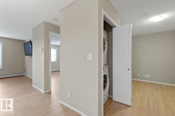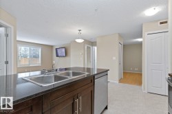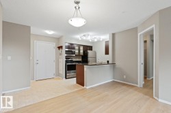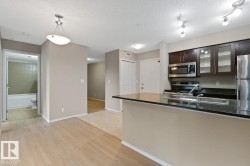 Beautiful well-maintained 2-bedroom, 2-bathroom condo located in the heart of Heritage Valley. With one titled HEATED UNDERGROUND PARKING spot. The unit has a large size den that can be multi purpose use such as an office, play or dinning room area. The unit features a spacious living room and has a patio door leading to a south-facing balcony. The open-concept kitchen is equipped with beautiful cabinetry, stainless steel appliances including a fridge, stove, dishwasher, and microwave hood fan, as well as a granite countertop. The master bedroom has a walk thru closet and a 4-pcs in-suite bathroom. The second bedroom is larger than the master bedroom. An additional full bathroom next to the second bedroom. The unit has brand new flooring, freshly painted with in-suite laundry. Located near walking trails, Superstore and many restaurants. Quick access to Anthony Henday. This home is perfect for the next family looking for comfort and convenience.
