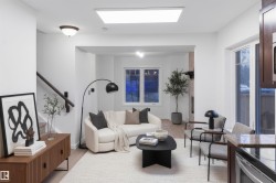 Welcome to this end unit town house in the heart of Queen Mary Park. The main level offers an impressive open concept kitchen with stainless steel appliances, rich cabinetry, tile backsplash, granite countertops, a large pantry, & an island ideal for entertaining. The inviting living room features a stylish stone accent wall, flowing seamlessly into the spacious dining area. A sleek half bath & laundry complete the main floor. Upstairs, you’ll find three bedrooms, including a bright primary suite with large windows and a private ensuite. A well-appointed 4pc main bathroom serves the upper level, along with two additional bedrooms. The separate entrance to the basement reveals even more versatility, including a second kitchen, full bathroom, & a bedroom/flex space. Outside, enjoy a beautiful, newly landscaped yard designed for relaxed outdoor living, along with the convenience of a single detached garage. Conveniently located close to schools, shops, transit, & more. Some photos are virtually staged.