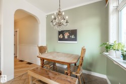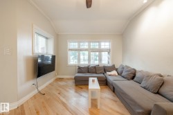 This Parkdale charmer fuses historic soul with modern polish in one of Edmonton’s most walkable, up-and-coming neighbourhoods. Steps away from the Commonweath Stadium, Community Rec Centre & Stadium LRT, the North Saskatchewan River Valley, and minutes from Downtown, the Royal Alex, Kingsway Mall, and an array of eateries & shops. Two storeys of character: upstairs there are 2 bedrooms plus a 5-piece bath with jetted tub and tons of natural light. Main floor has a 3rd bedroom, bright & spacious living room, large 3-piece bath, and a kitchen built for gathering, with exposed open-beam ceilings and refinished gorgeous hardwood floors in the living room and main-floor bedroom. An added separate entrance takes you to the unfinished basement which features full ceiling height, lots of windows, and is roughed in for both kitchen & bath, ideal to build out a full 2-bedroom suite. This is your chance to live bold, breathe art, bike paths, green space, and culture—all while feeling rooted in the real Edmonton.