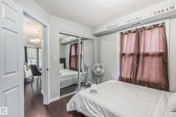 This cozy, 2 bed/2 bath, 854 sq ft unit is well lit with natural light due to its private corner location. It features A/C, a fireplace, stainless steel appliances, as well as a large wrap-around patio that is great for outdoor living and enjoying the city views. Your new home awaits in a vibrant neighborhood surrounded by the Ice District/Rogers Place Arena, MacEwan University, the LRT, and popular dining spots like the Lingnan, & Brew and Bloom. Additionally, the property offers heated underground parking; a valuable feature during the winter months in Edmonton. This property is popular due to its location and proximity to amenities. Come take a look!