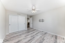 Welcome to The Lodge at Lewis Estates! This sought-after 30+ adult living complex feels like a mountain lodge retreat, complete with fitness centre, hot tub, steam room, party room, theatre, two rooftop patios, and a car wash — all just steps from the golf course. TIHIS UNIT FEATURES A RARE TITLED STORAGE UNIT! This main-floor condo offers 2 bedrooms and 2 bathrooms with a bright, open floor plan. The chef-inspired kitchen features Decorastone resurfaced granite countertops, abundant cabinetry, and a large island. The spacious bedrooms are separated by the living room, which opens to a west-facing covered patio with park views — the ideal spot to enjoy warm summer evenings. Highlights include a 3-pc main bath, 4-pc ensuite, in-floor heating, in-suite laundry, and storage. Complete with A titled parking stall very close to the elevators. Cats, birds & fish permitted with board approval (sorry, no dogs). Conveniently located near Transit, shopping, WEM, and with easy access to the Anthony Henday.