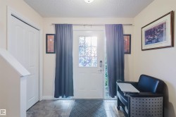 Welcome to this beautifully maintained, attached home in the highly sought-after community of Rutherford! Perfectly positioned directly across from walking trails and storm pond, this property offers an ideal blend of natural beauty, convenience, and modern living.Step inside to discover a bright interior,where natural light floods through large west-facing front windows and east-facing rear windows, creating a warm atmosphere throughout the living areas.The open-concept main floor is adorned with elegant hardwood flooring and features a thoughtfully designed layout.The modern kitchen boasts a central island with an eating bar, beautiful cabinetry, and a stylish backsplash. The rear entry provides access to the single attached garage and a private backyard.Upstairs, you'll find three well-appointed bedrooms, including a master suite with closets and a sleek three-piece bathroom.This situated near top amenities, including a K–9 school just a five-minute walk away, shopping centres, public transportation.