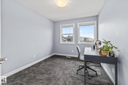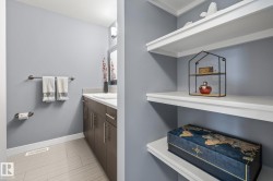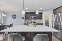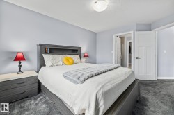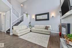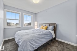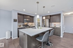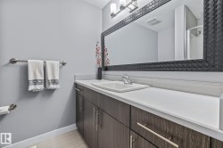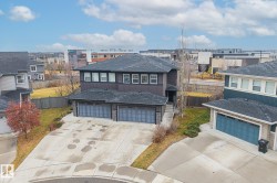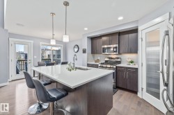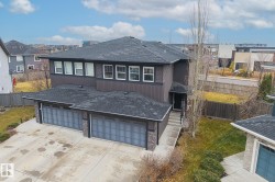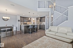 Rarely do you come across a half duplex with an open-to-below concept, making it feel more open and spacious. This fully upgraded Dolce Vita home is located in a quiet cul de sac in the heart of Windermere, which is surrounded by amenities, and even has an upgraded adjoining wall with extra insulation to minimize noise travel. The main floor welcomes you with a large entryway that leads into the cozy living room with soaring 18ft ceilings, a gas fireplace, built-in speakers, and large windows that allow in plenty of sunshine. The kitchen boasts a large island w/ seating, quartz countertops, stainless steel appliances, a gas stove, a walk-in pantry, a comfy dining area, and a central vac kick plate. Upstairs hosts the large primary bedroom with a walkthrough ensuite, featuring dual sinks, and a spacious walk-in closet. Upstairs also has 2 more bedrooms, a 4pc bathroom w/ built-in shelving, and a laundry room for added convenience. The basement is roughed-in and awaits your final touch. Welcome home!