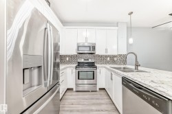 Welcome to Ion in Ambleside, where sophisticated design meets a vibrant, connected lifestyle. This stunning, 803 sqft south-facing suite is a sanctuary bathed in natural light. An open-concept living space with upgraded laminate flooring flows seamlessly into a chef-inspired kitchen. Here, modern white cabinetry and sleek stainless steel appliances create a perfect backdrop for entertaining. Step out onto your private balcony to savour serene and picturesque lake views. Two spacious bedrooms offer tranquil retreats, sharing access to a luxurious spa-like bathroom complete with a deep soaker tub and a separate glass shower. This home is curated for effortless living, featuring in-suite laundry, a dedicated work-from-home nook, and heated underground parking with a private storage unit. Ion further elevates your experience with exclusive amenities including a fitness centre, theatre room, rental guest suite, and an outdoor BBQ gazebo. Boutique shopping and chic dining are mere steps from your door.
