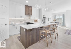 Scheduled for March 2026 possession, 22376 90 Avenue NW offers 1,934 sq ft of thoughtfully designed living space by San Rufo Homes. This 3-bedroom, 2.5-bathroom home features a bright open-concept main floor with a modern kitchen showcasing quartz countertops, stylish cabinetry, and luxury vinyl plank flooring that flows into the dining area and Great Room, highlighted by an electric fireplace. A side entry adds flexibility for future basement development potential. Upstairs, the spacious primary bedroom includes a walk-in closet and private ensuite, complemented by two additional bedrooms, a full bath, a versatile bonus room, and second-floor laundry. Built with a 200 AMP electrical service, this home provides long-term reliability and convenience. A double attached garage offers secure parking and extra storage. Located in the Rosemont community, close to parks, pathways, schools, and amenities, this upcoming home blends comfort, style, and functional family living. Photos are representative.