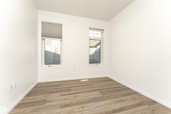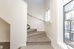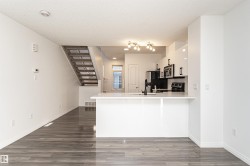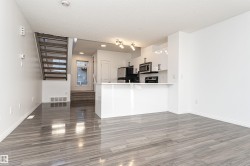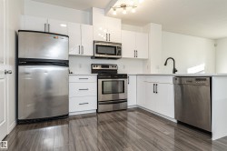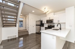 Excited to present this beautifully 2-bed, 2.5-bath townhouse in Mosaic Meadows! Enjoy an open-concept main floor with bright laminate flooring, a modern kitchen with new cabinets, quartz countertops, and stainless steel appliances, a convenient half bath with a large window with lots of natural light. Upstairs offers 2 spacious bedrooms, 2 full bathrooms, including a stunning ensuite in the primary. Vinyl plank and carpet flooring, upstairs laundry, and a tandem double garage add comfort and convenience. Located in a well-maintained complex, Perfectly located near schools, parks, shopping, and quick Henday access, this home combines style, comfort, and unbeatable convenience!