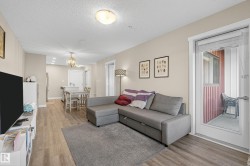 Welcome to contemporary living in the vibrant community of Tamarack! This stylish 1-bedroom, 1-bathroom condo offers 595 sq. ft. of thoughtfully designed space in the popular floor plan, featuring quartz countertops, stainless steel appliances, full-height tile backsplash, and 7” vinyl plank flooring. Enjoy the convenience of in-suite laundry, smart outlets, and a spacious private patio perfect for morning coffee or evening relaxation. The building offers a heated underground parking stall, secure fob access, an intercom system, LED-lit common areas, and a rooftop patio with panoramic views. Ideally located near shopping, restaurants, schools, and a recreation centre with easy access to major roadways and public transit, this move-in ready condo combines modern style with unbeatable convenience.