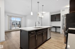 WELCOME TO ELAN! Another exceptional project by Carrington Communities! This 2 bed, 2 bath suite offers a partial ravine view and is loaded with upgrades: stainless steel appliances, full-height backsplash, quartz countertops throughout, pendant lighting, new laminate flooring, new paint, in-suite laundry, pantry, and a built-in tech center with added storage. The primary suite features a walk-through his & hers mirrored closet and a spacious 5' walk-in shower. Enjoy your private balcony with a natural gas BBQ line and one underground parking stall. Building amenities include a state-of-the-art fitness center, social room with wet bar & billiards, and video surveillance. Nestled next to the ravine, you're just minutes from scenic trails, shopping, transit, and Anthony Henday access. Don’t miss your chance to own in this fantastic location! Virtually Staged