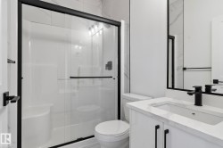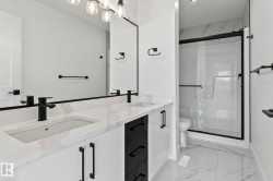 Welcome to our LAST model available in Southeast! This brand-new 1784 sqft 4-bedroom, 3 full bathroom half duplex. The main floor features an open to below entry, a full sized bedroom, full bathroom, along with a mudroom with a built in bench and coat hangers. Upgraded spindle railings open the home up along with numerous large windows. The sleekly built kitchen is complete with gloss cabinets, and quartz countertops. Complimented with upgraded lighting and all matte black fixtures. This open-concept design flows seamlessly into the spacious living room along with dining nook. A custom millwork feature wall with a mounted fireplace for entertaining. Other upgrades include, glass shower enclosures, and stylish tiled bathrooms. Upstairs a large bonus living area, laundry room for convenience, and 3 additional bedrooms including the master ensuite that features dual sinks. The separate entrance to the basement offers flexibility and an option to create a source of rental income. (2 windows in the basement)