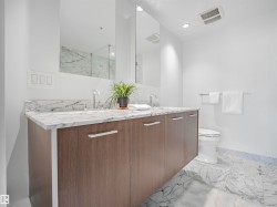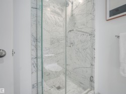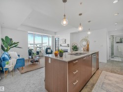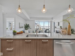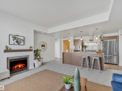 Welcome to this stylish 2 bed, 2 bath condo in the heart of Century Park! This bright, open-concept unit features wall-to-wall windows, a fireplace, and a private balcony with a gas BBQ hookup overlooking the serene courtyard. The gourmet kitchen is a chef’s dream with granite countertops, built-in microwave, oven, gas stovetop, and a large island. The luxurious primary suite boasts a 5-piece ensuite with marble tile, a soaker tub, and double vanity. Enjoy the convenience of titled underground parking and a separate titled storage cage. Building amenities include a fitness centre and ALL UTILITIES covered in condo fees. Just steps to the LRT, Century Park shopping plaza, and minutes to Calgary Trail and South Edmonton Common – this location has it all!