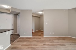 Cute As A Button, This TOP FLOOR Chappelle Garden Charmer Features AIR CONDITIONING, 2 TITLED PARKING STALLS (1 Heated Underground & 1 Above Ground Stall), & 1 TITLED STORAGE UNIT. Unbeatable Value, Welcome Home To This Adorable 1 Bathroom, 1 Bedroom Plus Den Condo. Enjoy The Open Concept Floor Plan Featuring Modern Cabinetry, Granite Countertops with Eating Bar Ledge & Stainless Steel Appliances. The Living Room Is An Ample Size Showcasing Modern Paint & Vinyl Plank Flooring. Step Out Through The Sliding Doors On To Your Covered Patio & Enjoy Your Top Floor View With A Cup Of Coffee Or A Glass Of Wine! The Bedroom, The Office Nook (Den), 4 PC Bath & Convenient IN-SUITE LAUNDRY Complete The Unit. Close To All Amenities, Including Shopping, Schools, Parks, Golf, ETS, The Henday, Airport, Walking Trails & More (Great For Young Professionals Or First Time Home Buyers), Your New Abode Awaits YOU! Note: Excellent Self Managed Condo, Secure Building & Low Condo Fees. *Photos Are Virtually Staged.*