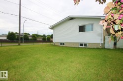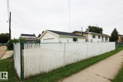 Great Curb Appeal! Spacious Corner Lot, Huge Garage & Plenty of Parking! Welcome to this 1,219 sq. ft. fully finished bungalow! This home has seen many updates including windows, siding, soffits, fascia, shingles, furnace, hot water tank, stainless steel appliances, and a refreshed kitchen with updated cabinets. Offering 4 bedrooms plus a flex room that could be a 5th, 2 bathrooms, and a separate entrance for future suite potential-ideal for families or investors. The finished basement has a large rec room with a charming wood-burning fireplace. Outside features an extended double garage with space for up to 6 vehicles. The fully fenced and landscaped yard is split into two areas—ideal for dogs or tenants. This home is steps from Jubilee Park with its spray park, skating rinks, playground, and picnic areas. Also, close to shopping, public transportation, restaurants, the North Sask River Valley trails, and roadways including Yellowhead Trail and Anthony Henday. Pet & Smoke free! Don’t miss this one!