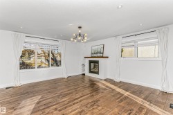 Beautifully renovated bungalow in the desirable neighbourhood of Fulton Place. The open concept main floor includes modern wide-plank wood flooring throughout. The tastefully upgraded kitchen includes a large quartz eat-in island, stainless steel appliances, white quartz counters and tons of stylish cabinetry. The kitchen looks out to a large bright living room with lots of windows, finished with a white brick-surround gas fireplace. Down the hall is a spacious primary bedroom and 2nd bedroom adjacent to a 5-piece bath with double sinks and a vanity station. The basement includes a large recreation room open to a room with a wrap around wet bar (can easily be converted to 3rd bedroom), an additional full bath and tons of storage space. Additional features include A/C (2023) an oversized, heated double garage, beautiful spacious yard and recent upgrades including: windows, siding, deck, furnace and insulation. Close to the Whitemud and only minutes from shopping and all amenities, this home is a must see!