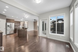 Lovingly maintained by the original owners, this bright corner lot 2-storey offers true move in comfort with no construction noise, dust, or waiting for landscaping. Enjoy a fully finished yard with a deck, two gazebos, fountains, and app-controlled Gemstone Lighting, perfect for relaxing or entertaining. Inside, hardwood floors, custom blinds, and sun-filled spaces create a welcoming feel. The main floor features a large foyer, flex room (ideal as a dining, playroom, or music room), 2-piece bath, and a walk-through pantry connecting the mudroom to a spacious kitchen with granite counters and island seating. The dining area, surrounded by windows, opens to the yard for effortless BBQs and family dinners. Cozy up by the gas fireplace with its designer wood mantle, or retreat upstairs to the bonus room, laundry, and three bedrooms including a generous primary suite with walk-in closet and 5-piece ensuite. The basement is ready for future development with 2 windows and rough-in plumbing. Central AC, Furnace