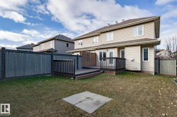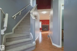 Welcome to your new home in Windermere! This beautifully maintained half-duplex blends comfort and style with upgrades like central A/C, a tankless on-demand hot water system, recessed lighting, and granite counters in the kitchen and baths. The main floor features hardwood, a bright open living room with a cozy gas fireplace, and a stylish kitchen with ceiling-height cabinets, stainless steel appliances, walk-in pantry, and large island. A 2-pc bath, new laundry, and mudroom add convenience. Upstairs offers a spacious primary suite with walk-in closet and 4-pc ensuite, plus two more bedrooms and a full bath. The finished basement includes a rec area, shelving, and a 2-pc bath. Enjoy the landscaped, fenced backyard with a new expanded deck and shed — move-in ready and made for modern living!