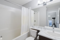 Welcome to this well-maintained 2015-built 2-storey detached home in the sought-after West Edmonton community of Rosenthal, offering 3 spacious bedrooms, 2.5 bathrooms including a primary ensuite and a generous walk-in closet, an open-concept main floor with plenty of natural light, and an extended detached garage with high ceilings—perfect for extra storage, a workshop, or larger vehicles. This home provides efficient use of space and low-maintenance living, all within a vibrant neighbourhood known for parks, trails, and family-friendly amenities, with easy access to schools, shopping, and major roadways. A fantastic opportunity for first-time buyers or families seeking a modern, versatile home in a growing community.