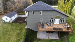 Welcome to Bench Creek Estates — where mountain views and modern comfort unite. This custom two-storey home on 4.05 acres offers breathtaking southwest views of the Rocky Mountains, combining refined country living with the convenience of being in town. The open-concept design features a striking staircase, bright and spacious living areas, and a gourmet kitchen with abundant cabinetry, a center island, stainless steel appliances, and a new induction stove — ideal for both daily living and entertaining.The master suite includes two private balconies — one overlooking the lower level and the other framing majestic mountain views — and a spa-inspired 5-piece ensuite with a large air-jet soaker tub, walk-in shower, and dual vanity, complemented by a spacious walk-in closet with convenient washer and dryer. Two additional bedrooms and 4 pc bathroom complete the upper level.The fully developed walkout basement offers comfort and entertainment, featuring in-floor heating, a theatre room with projector and sound system, a large family room, a 3-piece bathroom, and a spacious fourth bedroom. The triple attached heated garage provides ample parking and includes a bonus room, perfect for a home office, gym, or ultimate man cave.Recent upgrades and features include new electronic window blinds, fresh interior paint, central air conditioning (2025), and a large new deck — perfect for entertaining or enjoying the spectacular views. Additional highlights include in-floor heating in the basement and garage, hot water on demand, and three new garage door openers with video capabilities, combining comfort, convenience, and modern technology throughout.This property is one of 11 in a “bare land condominium”, where you own your lot and have access to 30 acres of fenced and cross-fenced common land, with Bench Creek running along the edge — offering the perfect balance of privacy, community, and natural beauty.