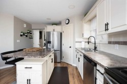 Welcome to 225 Hawthorn Way! This well maintained 5 bedrooms and 3.5 bathrooms perfect for growing families offers 2,500 sq ft of living space, updated bathrooms fixtures, new light fixtures, fresh paint, new hot water tank (2022), new trim and interior doors. As you walk in the front door, you will be welcomed into a bright and charming living room that flows seamlessly into the dining room and kitchen featuring a corner pantry, an island with breakfast bar, refinished white cabinetry, sleek black hardware and door for direct access to the rear deck. To complete the main floor is a 2-piece bathroom with laundry. On the upper floor, you will find the spacious primary bedroom with walk-in closet and 3-piece bathroom, 2 good size bedrooms and a 4-piece bathroom. The fully finished basement has 2 more bedrooms, 3-piece bathrooms and a large 15x14 storage room. The fully fenced yard has a gate to access the back lane, a raised garden bed and a large deck next to a fire pit perfect for summer entertainment. The backyard has also enough space to build a garage. Book your appointment today!