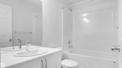 NO CONDO FEES and AMAZING VALUE! You read that right welcome to this brand new townhouse unit the “Reimer” Built by the award winning builder Pacesetter homes and is located in one of Fort Saskatchewan newest communities of Southpointe. With over 1250 square Feet, this opportunity is perfect for a young family or young couple. Your main floor as you enter has a flex room/ Bedroom that is next to the entrance from the garage with a 3 piece bath. The second level has a beautiful kitchen with upgraded cabinets, upgraded counter tops and a tile back splash with upgraded luxury Vinyl plank flooring throughout the great room. The upper level has 2 bedrooms and 2 bathrooms. This home also comes completed with front and back landscaping and a attached garage. *** Photo used is of an artist rendering , home is under construction and will be complete by February 2026 colors may vary ***
