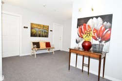 ACT FAST! Two bedroom, two bathroom, adult-only condo, pets allowed, located in the highly sought after Linsford Park! Within walking distance to Leduc's main core; shopping and restaurants. This beautiful, open concept, condo offers newer laminate flooring throughout, a sparkling white kitchen featuring newer Samsung appliances plus island with eating bar. (Bar stools stay) Enjoy the corner gas fireplace in the living room; east facing patio doors lead to huge wrap around deck; perfect place to enjoy your morning coffee! Master bedroom has a walk through closet leading to a 3 pc ensuite. 2nd bedroom, a 4 pc bathroom, plus the insuite laundry with storage completes this unit. Included is a natural gas BBQ. With winter coming, this TITLED heated underground parking is a plus! Located in a mature, quiet neighborhood, this condo offers the perfect blend of comfort, convenience, and lifestyle.