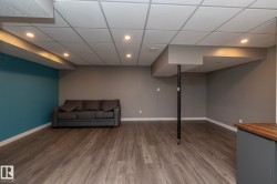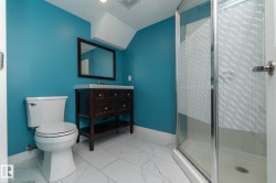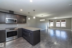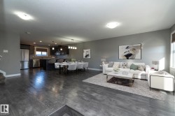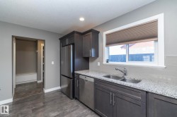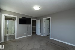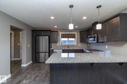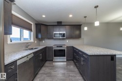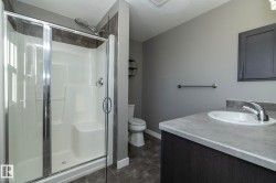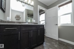 Welcome to Robinson, one of Leduc’s most sought-after neighbourhoods! Built by Dolce Vita Homes, this beautifully finished 2-storey offers 3+1 bedrooms, 4 baths, & a developed basement designed for comfort and convenience. The open-concept main floor features rich espresso cabinetry, granite counters, stainless appliances, pendant lighting, & a large island—perfect for family meals or entertaining. The bright living area flows seamlessly into the kitchen & dining space, while the deck offers relaxing views of the park and lake. Upstairs, the primary suite includes a JUILET BALCONY, walk-in closet, & a private ensuite with oversized stand-up shower. Two additional bedrooms, a full bath, & UPPER-FLOOR LAUNDRY make daily living easy. The FINISHED BASEMENT adds a cozy family/media room, 4th bedroom, & full bath. Enjoy year-round comfort with A/C, R-60 insulation for energy efficiency, & a no-maintenance yard complete with deck & double garage. Steps to Ruddy Park & walking trails. This home has it all!