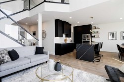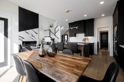 SHOW HOME FOR SALE! This award-winning show home in Southbrook, built by Stranville Living Master Builder, is finally ready to be sold and occupied by a lucky new homeowner. This Perth II model with walk-out basement has been recognized locally , provincially, and nationally for it's overall design, the executive kitchen, and the primary ensuite, making it one of the most popular builds every produced by Stranville Living. The pictures speak for themselves, but this home must be seen to be fully appreciated. The main floor is blessed with a gorgeous kitchen, accented by two-tone cabinetry, veined waterfall quartz island, and seamlessly integrated panel-ready appliances. Adjacent to the main kitchen is a private spice kitchen that includes a gas range and electric oven, hood fan, sink , and dishwasher. The striking main floor fireplace is a show-stopper that centers the family room and towers up the 18' ceilings in the open-to-below area with massive south-facing windows overlooking the pond at Discovery Park. Stairs with glass railing lead you to the upper level where you'll find the 170+ square foot primary bedroom that also enjoys views to the south. There are not many ensuite bathrooms that can rival this beauty, with features that include a custom shower with integrated tiled floor and walls, floating vanity in quarter-sawn oak with double sinks and floor lighting, deep soaker tub with floor-mounted fixtures, and a private water closet. Through the ensuite, you'll find the laundry room with a stacking washer/dryer set with sink and cabinet. Two more ample bedrooms, full bathroom, and generous media room wrap-up the upper level. The fully developed walkout basement adds two more bedrooms, full bathroom, and family room with a sliding patio door to the rear yard. If you're looking for 5-bedroom, fully developed, fully landscaped southside home with upgrades for days, you've come to the right house. There's nothing like NEW!